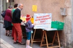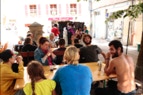 Déambulation en rue sur places et placettes et dans tous les lieux ayant réceptionnés les boîtes aux lettres. En final un rassemblement de crieurs sur un lieu pré-défini fond de scène rideaux, tapis au sol, pancarte annonçant l’heure de la criée.
